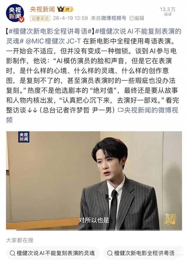 言之有物赛谈,檀健次一直遥遥卓绝!这不,在央视新闻释出的采访中,檀健次对新作《空枪》、AI与演员以及北影节宣传履行大使身份明白,进行了既具深度也有辨识度的不雅点抒发,不错说,每一个字齐铿锵,每一个句齐值得反复朗诵!