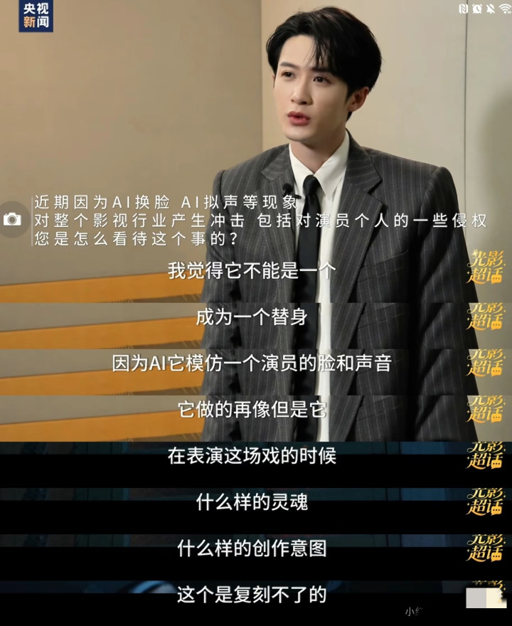 因为AI它师法一个演员的脸和声息,他作念的再像,然则他在饰演这场戏的时候是什么样的心思,什么样的灵魂,什么样的创作意图,这个是复刻不了的。