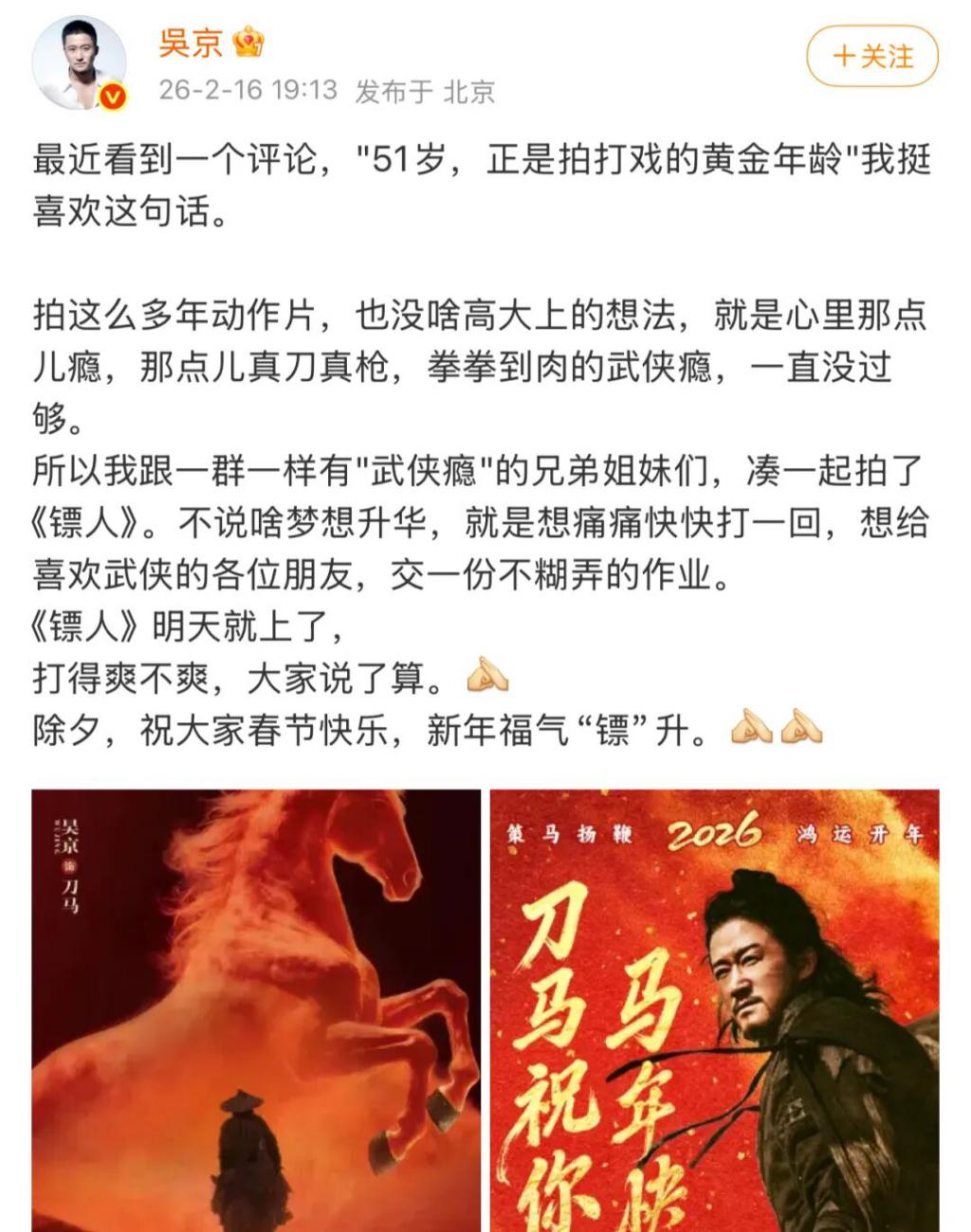 大年月朔,《镖东说念主》上映,坚信有不少不雅众和阿杠相同,走进电影院,几许是冲着吴京去的。