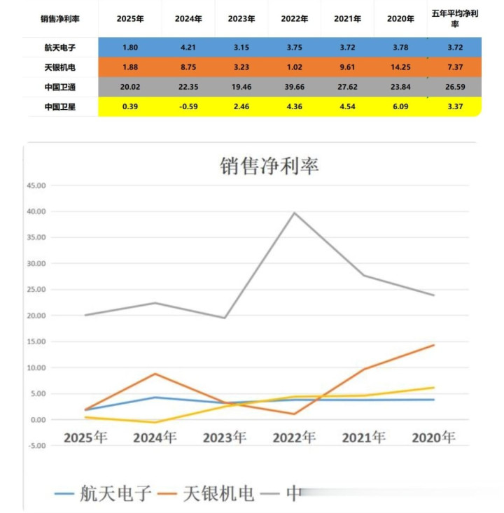 航天电子、中国卫星以制造配套为主,研发、出产、托福成本偏高,净利润空间相对有限。