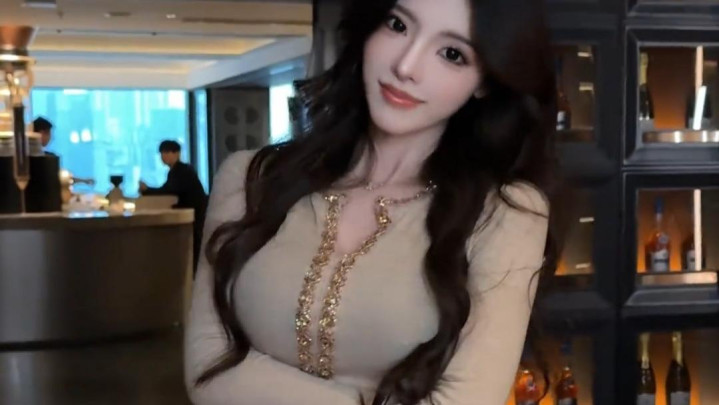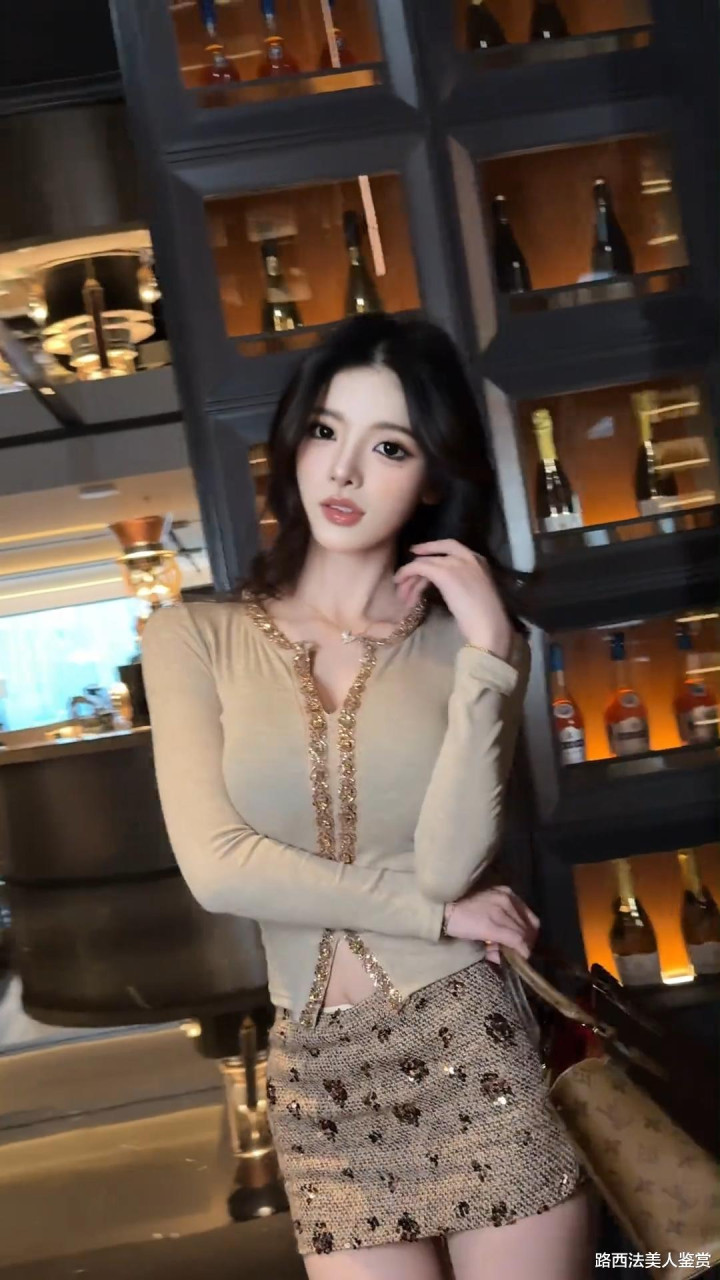 夜色酒柜前的漂后身影:金色亮片裙摇曳的王人市风情