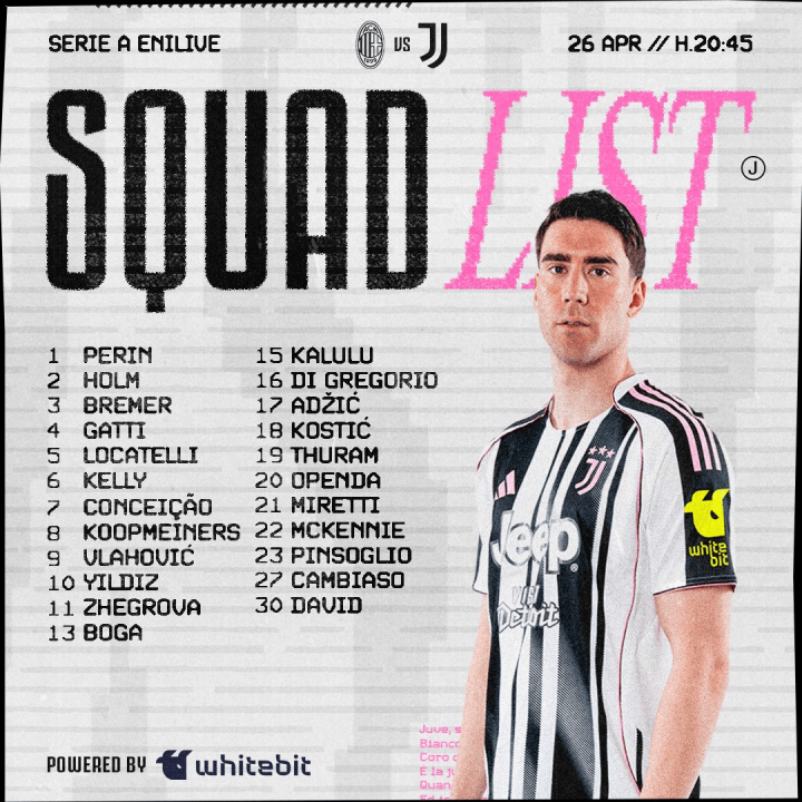 虎扑04月26日讯北京时辰来日凌晨,意甲联赛第34轮,时时彩app尤文图斯将作客挑战AC米兰。赛前,尤文吏方公布了本场比赛的大名单。