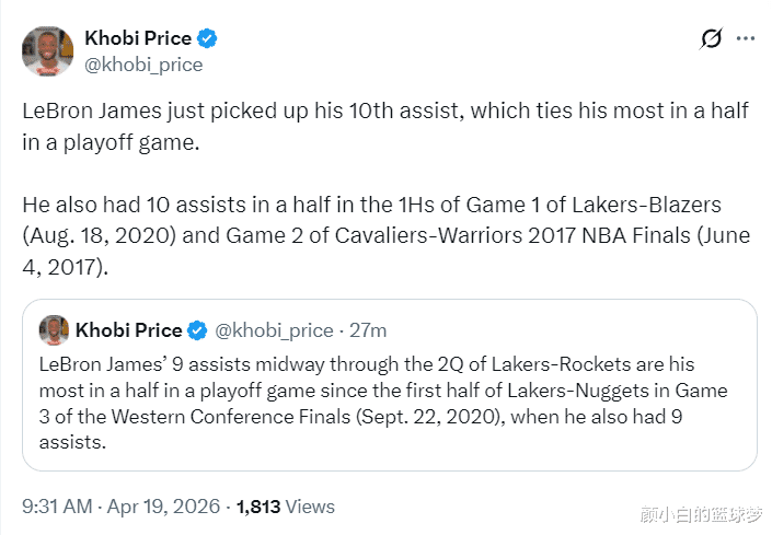 5.这亦然詹姆斯生计第三次半场10助攻,上一次是2020年;