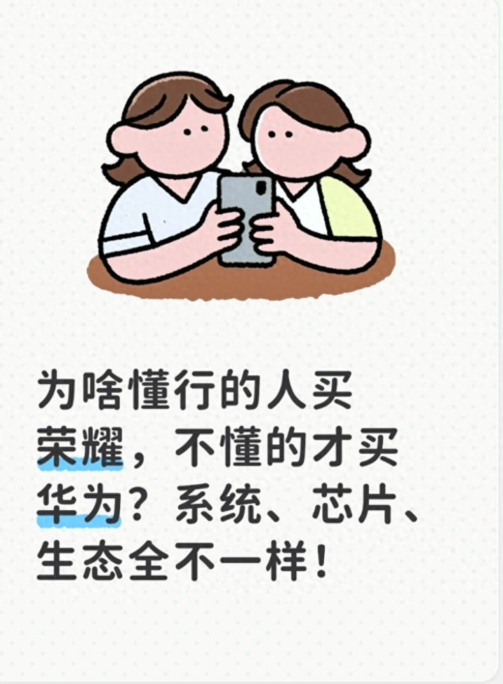 不是说华为不好,也不是说荣耀更强,仅仅许多粗俗老匹夫,自身莫得商务需求、莫得多诞生生态需求,单纯正常粗俗使用,花高价买华为高端功能根本用不上,熟悉费钱买闲置,这亦然为啥懂行的东谈主会凭证需求保举,不懂行的东谈主只看牌子跟风买。