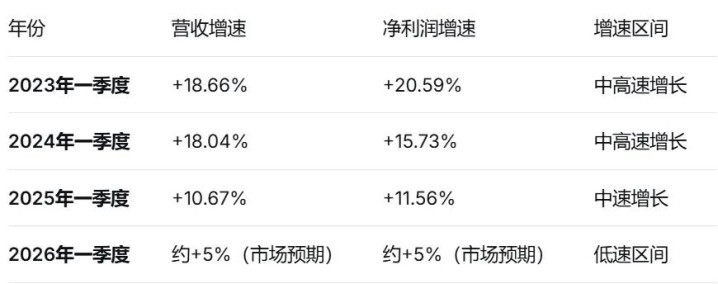 把时期拉长,看2023到2026年诱骗4年的第一季度增速变化,你会发现,茅台增长放缓早已埋下伏笔。