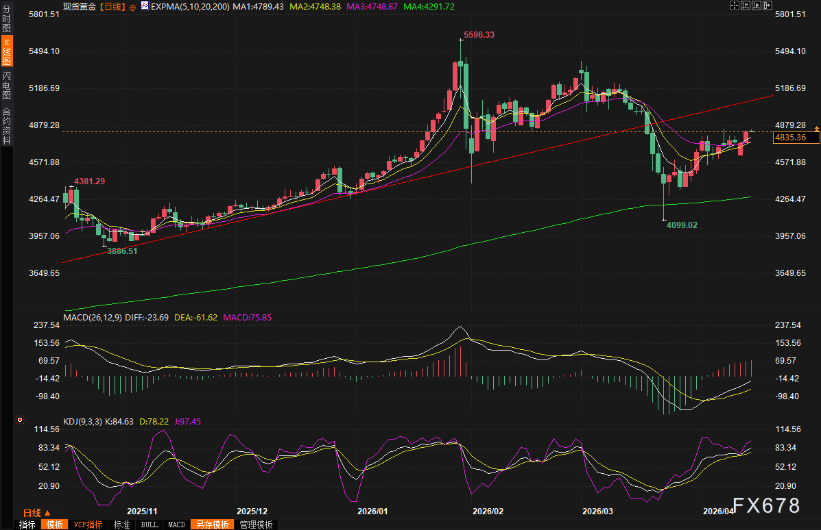 (现货黄金日线图,来源:易汇通)北京时分07:33,现货黄金现报4835.52好意思元/盎司。