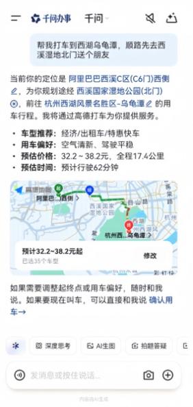 千问还让“打车”具备了追思与预约才调。用户只需告诉千问家庭和公司地址,即可径直让千问“帮我打车回家”或“打车去公司”;说一句“下昼6点半放工,帮我约车回家”,系统即可自动领略时候并完成预约。跟着这些才调的迟缓加强,千问将为用户带来更合乎个东说念主偏好的出行服务。