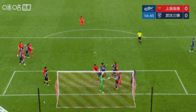 第14分钟,刘祝润横扫后点,安佩姆包抄射门被封堵出底线↓