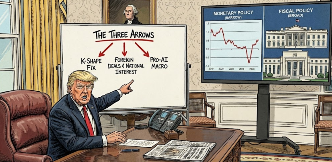 干预新的一年,特朗普衔接霸榜国际新闻头条,表里事务全面出击:对内务策尝试汲引K型经济,对外事务激进地寻找个东说念主中选和国度利益的“左券数”,对AI叙事提供愈加友好的宏不雅环境。