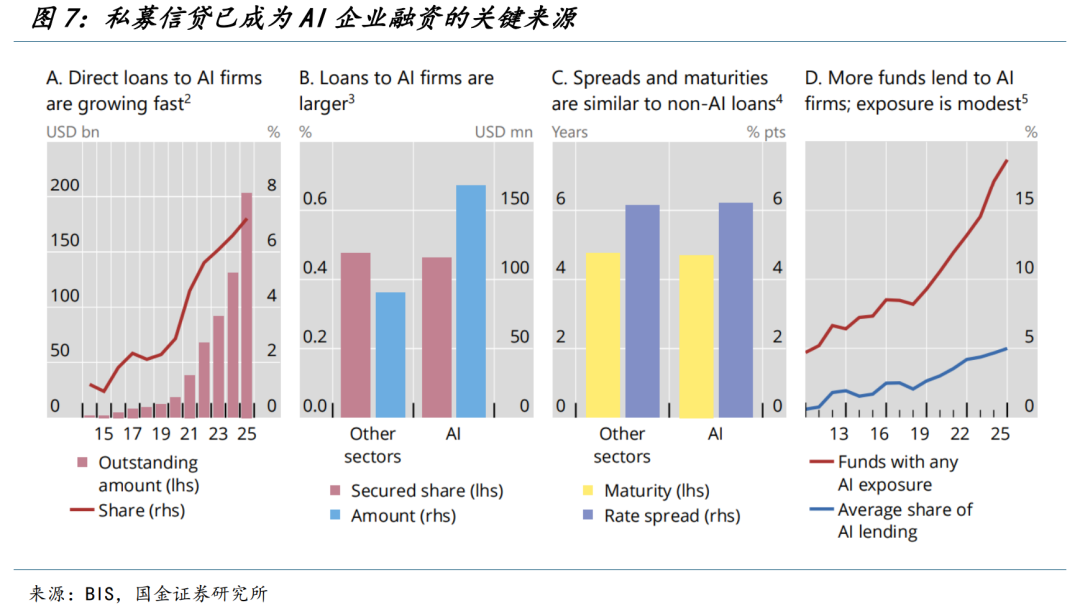 2026年,AI企业外部融资的紧迫性已无需多言,随之而来的私募信贷风险将会进一步网络——咱们依然看到更多比例的私募信贷基金握有AI量度敞口。适度2025年末,私募信贷对AI企业的奏凯投资额呈现止境快速的增长,但于此同期,这些AI企业的贷款所对应的信用利差并莫得与其他私募信贷贷款类别变成赫然区别。