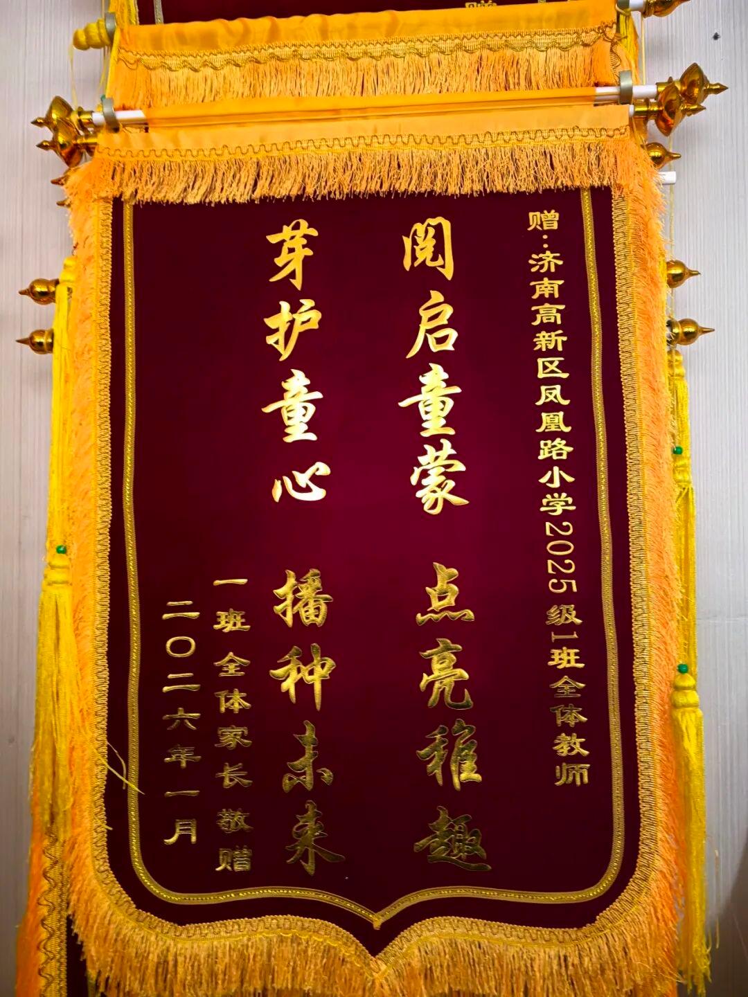 鲁网2月4日讯近日,济南高新区凤凰路小学西校区暖意融融,一年纪一班(阅芽班)整体家长代表将两面千里甸甸的锦旗,分离赠予学校和班级整体庄重,以此抒发对学校“德润心田,艺泽成长”教悔理念的高度认同,以及对敦厚们贫寒莳植、倾心育东谈主的忠诚感谢。